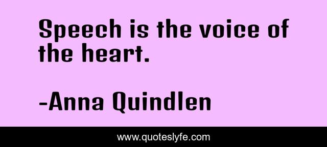 This page presents the quote "Speech is the voice of the heart.". Author of this quote is Anna Quindlen. This quote is about heart, voice, speech,.