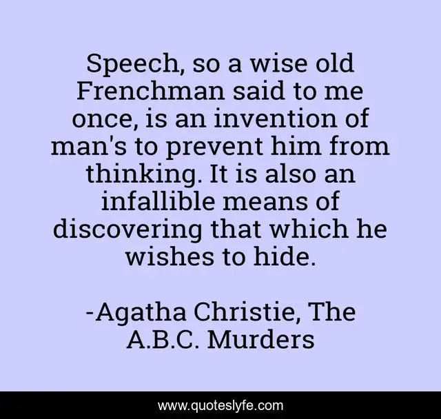 "Agatha Christie, The A.B.C. Murders Quotes." Quoteslyfe.com, 2025. Fri. 05 Dec. 2025. <https://www.quoteslyfe.com/quote/Speech-so-a-wise-old-Frenchman-said-162854>.