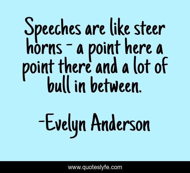 "Evelyn Anderson Quotes." Quoteslyfe.com, 2025. Sat. 06 Dec. 2025. <https://www.quoteslyfe.com/quote/Speeches-are-like-steer-horns-a-point-272023>.