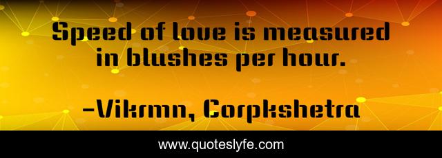 "Vikrmn, Corpkshetra Quotes." Quoteslyfe.com, 2025. Mon. 08 Dec. 2025. <https://www.quoteslyfe.com/quote/Speed-of-love-is-measured-in-blushes-83753>.