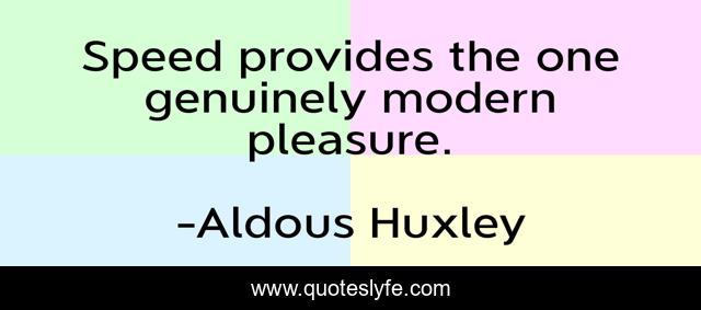 "Aldous Huxley Quotes." Quoteslyfe.com, 2025. Sat. 06 Dec. 2025. <https://www.quoteslyfe.com/quote/Speed-provides-the-one-genuinely-modern-pleasure-263760>.