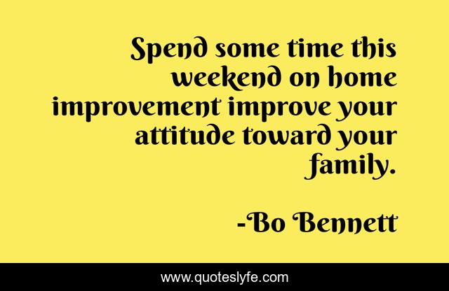 This page presents the quote "Spend some time this weekend on home improvement improve your attitude toward your family.". Author of this quote is Bo Bennett. This quote is about home, family, time,.