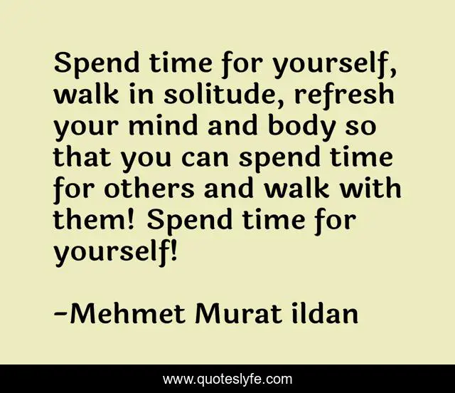 "Mehmet Murat ildan Quotes." Quoteslyfe.com, 2025. Sat. 06 Dec. 2025. <https://www.quoteslyfe.com/quote/Spend-time-for-yourself-walk-in-solitude-213184>.