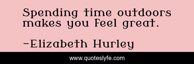 "Elizabeth Hurley Quotes." Quoteslyfe.com, 2025. Mon. 08 Dec. 2025. <https://www.quoteslyfe.com/quote/Spending-time-outdoors-makes-you-feel-great-301814>.