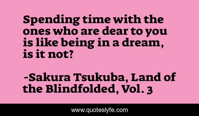 This page presents the quote "Spending time with the ones who are dear to you is like being in a dream, is it not?". Author of this quote is Sakura Tsukuba, Land of the Blindfolded, Vol. 3. This quote is about inoue-san, dream, land-of-the-blindfolded, family,.