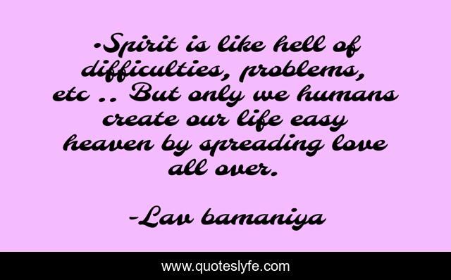 "Lav bamaniya Quotes." Quoteslyfe.com, 2025. Sat. 06 Dec. 2025. <https://www.quoteslyfe.com/quote/Spirit-is-like-hell-of-difficulties-problems-125582>.