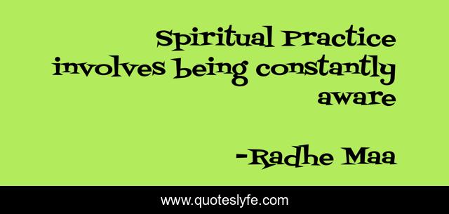 This page presents the quote "Spiritual Practice involves being constantly aware". Author of this quote is Radhe Maa. This quote is about spiritual, radhe-guru-maa, spiritual-leader, radhe-maa, spiritual-sayings, wisdom, quotes-and-saying, inner-peace, spiritual-insights,.