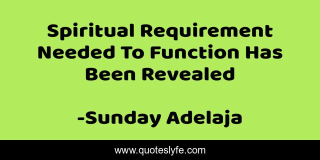 This page presents the quote "Spiritual Requirement Needed To Function Has Been Revealed". Author of this quote is Sunday Adelaja. This quote is about function, requirement, revealed, spiritual,.