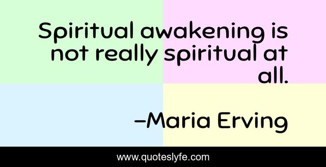 This page presents the quote "Spiritual awakening is not really spiritual at all.". Author of this quote is Maria Erving. This quote is about awakening, enlightenment, spiritual-awakening,.