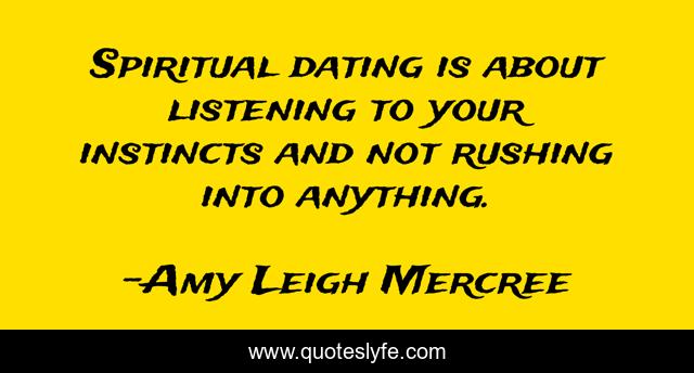 This page presents the quote "Spiritual dating is about listening to your instincts and not rushing into anything.". Author of this quote is Amy Leigh Mercree. This quote is about quotes-de-la-vida, amy-leigh-mercree, quote-of-the-day, quotes-tumblr, inspirational, quote-about-life, enthusiasm, quotes-twitter, quote-of-the-week,.
