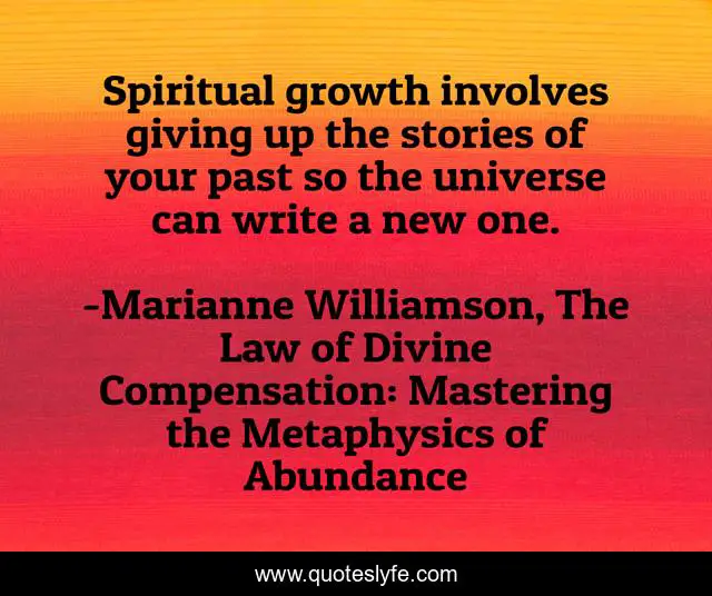 "Marianne Williamson, The Law of Divine Compensation: Mastering the Metaphysics of Abundance Quotes." Quoteslyfe.com, 2025. Mon. 08 Dec. 2025. <https://www.quoteslyfe.com/quote/Spiritual-growth-involves-giving-up-the-stories-143470>.