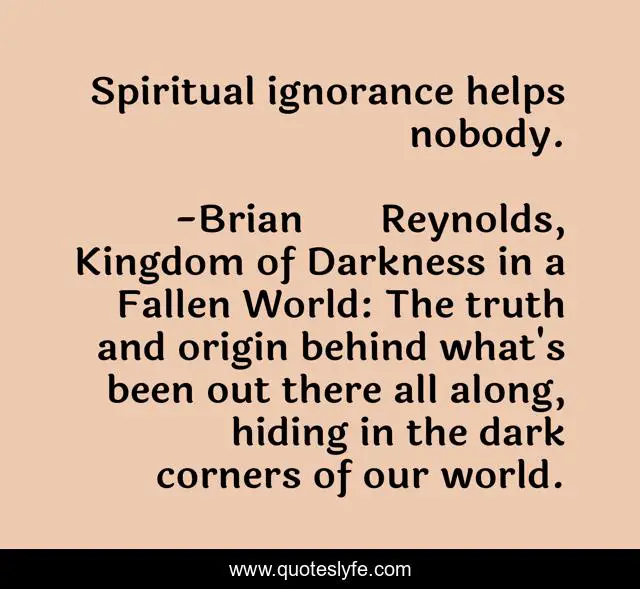 "Brian Reynolds, Kingdom of Darkness in a Fallen World: The truth and origin behind what's been out there all along, hiding in the dark corners of our world. Quotes." Quoteslyfe.com, 2025. Mon. 08 Dec. 2025. <https://www.quoteslyfe.com/quote/Spiritual-ignorance-helps-nobody-62074>.