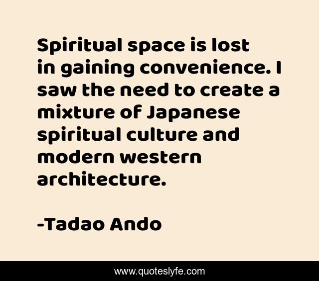 "Tadao Ando Quotes." Quoteslyfe.com, 2025. Mon. 08 Dec. 2025. <https://www.quoteslyfe.com/quote/Spiritual-space-is-lost-in-gaining-convenience-289457>.