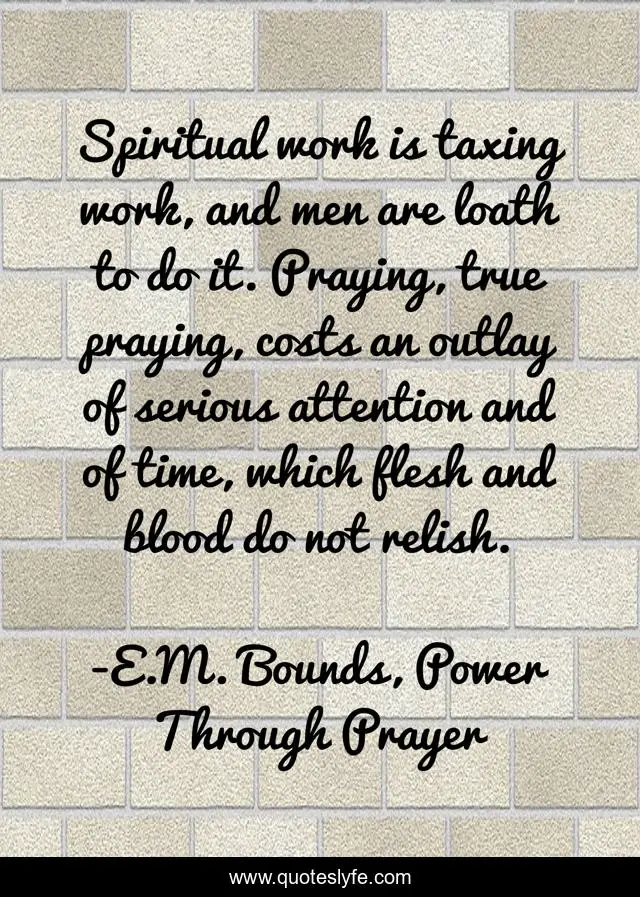 "E.M. Bounds, Power Through Prayer Quotes." Quoteslyfe.com, 2025. Mon. 08 Dec. 2025. <https://www.quoteslyfe.com/quote/Spiritual-work-is-taxing-work-and-men-71906>.