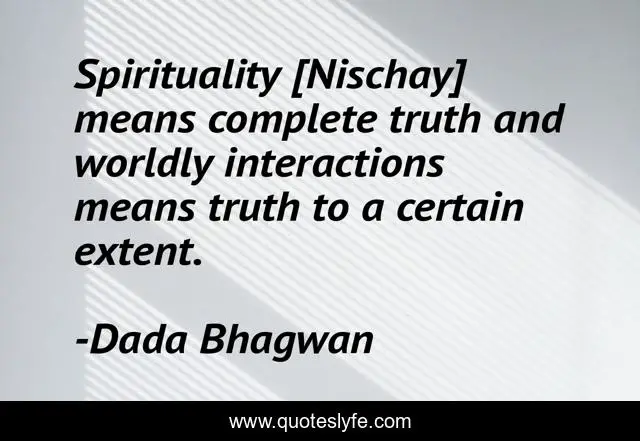 This page presents the quote "Spirituality [Nischay] means complete truth and worldly interactions means truth to a certain extent.". Author of this quote is Dada Bhagwan. This quote is about spiritual, interaction, spirituality, sincerity, truth, nischay,.