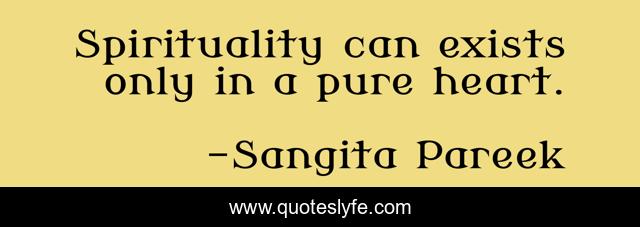 This page presents the quote "Spirituality can exists only in a pure heart.". Author of this quote is Sangita Pareek. This quote is about heart, god, theist, emotions, spirituality, human,.