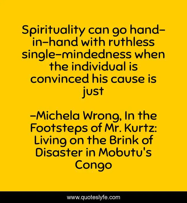 "Michela Wrong, In the Footsteps of Mr. Kurtz: Living on the Brink of Disaster in Mobutu's Congo Quotes." Quoteslyfe.com, 2025. Sun. 07 Dec. 2025. <https://www.quoteslyfe.com/quote/Spirituality-can-go-hand-in-hand-with-30170>.