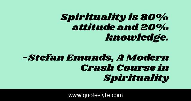 "Stefan Emunds, A Modern Crash Course in Spirituality Quotes." Quoteslyfe.com, 2025. Sun. 07 Dec. 2025. <https://www.quoteslyfe.com/quote/Spirituality-is-80-attitude-and-20-knowledge-44455>.