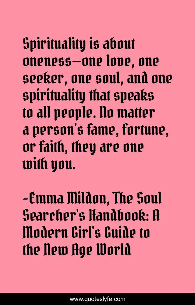 "Emma Mildon, The Soul Searcher's Handbook: A Modern Girl's Guide to the New Age World Quotes." Quoteslyfe.com, 2025. Mon. 08 Dec. 2025. <https://www.quoteslyfe.com/quote/Spirituality-is-about-oneness-one-love-one-201054>.