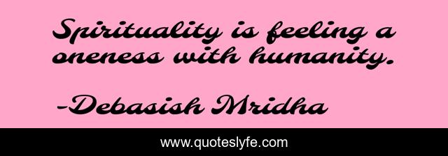 This page presents the quote "Spirituality is feeling a oneness with humanity.". Author of this quote is Debasish Mridha. This quote is about quotes, philosophy, debasish-mridha, spirituality, oneness-with-humanity, debasish-mridha-md, inspirational, enthusiasm, humanity,.
