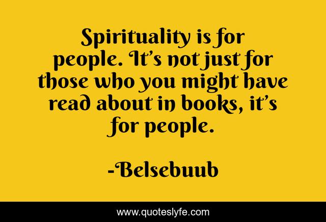 This page presents the quote "Spirituality is for people. It’s not just for those who you might have read about in books, it’s for people.". Author of this quote is Belsebuub. This quote is about confidence, positive, motivational, spirituality, optimistic, inspirational, enthusiasm,.