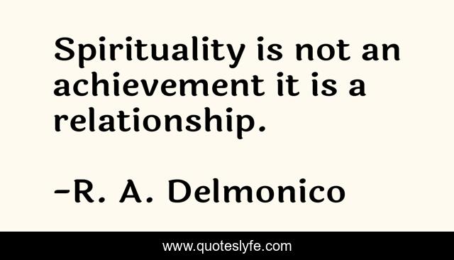 This page presents the quote "Spirituality is not an achievement it is a relationship.". Author of this quote is R. A. Delmonico. This quote is about spirituality, achievement,.