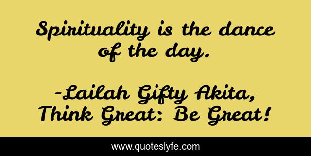 "Lailah Gifty Akita, Think Great: Be Great! Quotes." Quoteslyfe.com, 2025. Sat. 06 Dec. 2025. <https://www.quoteslyfe.com/quote/Spirituality-is-the-dance-of-the-day-63707>.