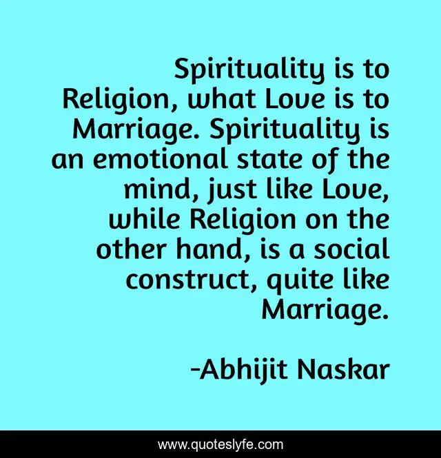 Spirituality is to Religion, what Love is to Marriage. Spirituality is an emotional state of the mind, just like Love, while Religion on the other hand, is a social construct, quite like Marriage.