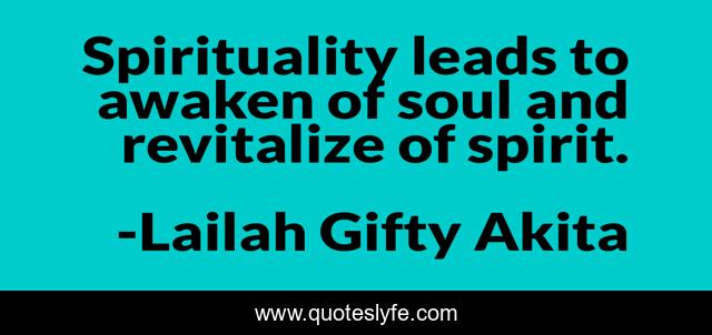 "Lailah Gifty Akita Quotes." Quoteslyfe.com, 2025. Sat. 06 Dec. 2025. <https://www.quoteslyfe.com/quote/Spirituality-leads-to-awaken-of-soul-and-63490>.