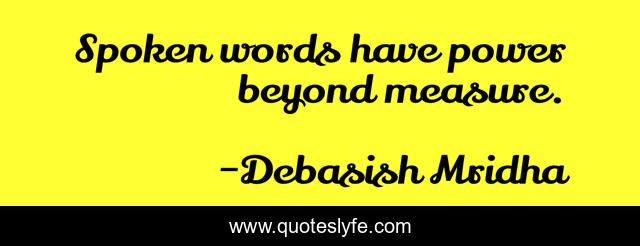 This page presents the quote "Spoken words have power beyond measure.". Author of this quote is Debasish Mridha. This quote is about miraboli, spoken-words, oscar-wilde, philosophy, debasish-mridha, tagore, quotes, buddha, debasish-mridha-md,.