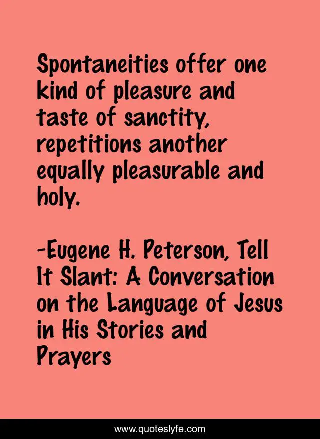 "Eugene H. Peterson, Tell It Slant: A Conversation on the Language of Jesus in His Stories and Prayers Quotes." Quoteslyfe.com, 2025. Fri. 05 Dec. 2025. <https://www.quoteslyfe.com/quote/Spontaneities-offer-one-kind-of-pleasure-and-205970>.