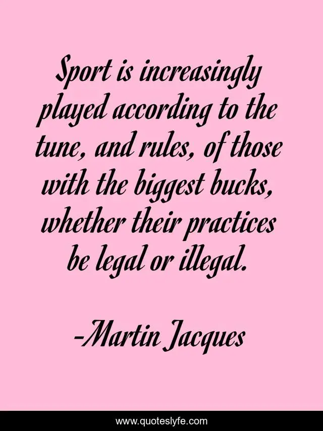 This page presents the quote "Sport is increasingly played according to the tune, and rules, of those with the biggest bucks, whether their practices be legal or illegal.". Author of this quote is Martin Jacques. This quote is about rules, illegal, biggest,.