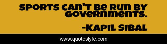 This page presents the quote "Sports can't be run by governments.". Author of this quote is Kapil Sibal. This quote is about run, governments,.
