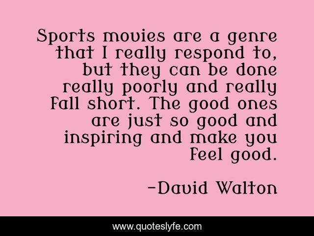 This page presents the quote "Sports movies are a genre that I really respond to, but they can be done really poorly and really fall short. The good ones are just so good and inspiring and make you feel good.". Author of this quote is David Walton. This quote is about short, good, fall,.
