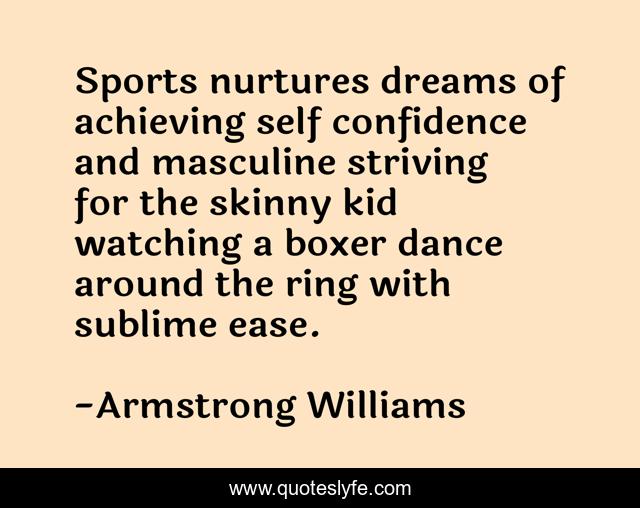 This page presents the quote "Sports nurtures dreams of achieving self confidence and masculine striving for the skinny kid watching a boxer dance around the ring with sublime ease.". Author of this quote is Armstrong Williams. This quote is about dance, confidence, sports,.