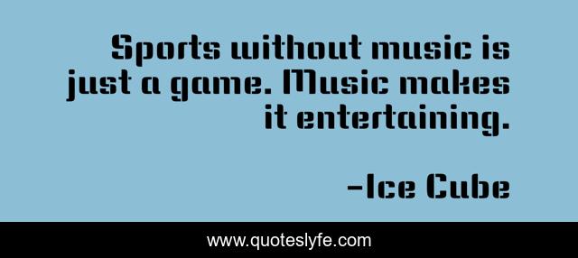 This page presents the quote "Sports without music is just a game. Music makes it entertaining.". Author of this quote is Ice Cube. This quote is about game, without, music,.
