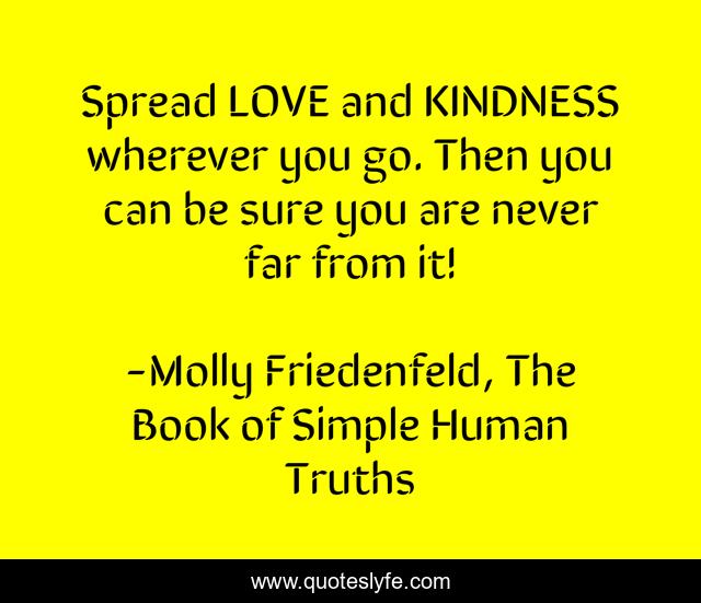 "Molly Friedenfeld, The Book of Simple Human Truths Quotes." Quoteslyfe.com, 2025. Fri. 05 Dec. 2025. <https://www.quoteslyfe.com/quote/Spread-LOVE-and-KINDNESS-wherever-you-go-136743>.