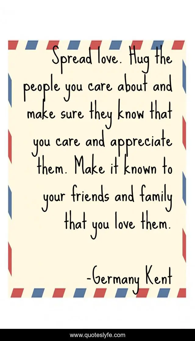 "Germany Kent Quotes." Quoteslyfe.com, 2025. Tue. 09 Dec. 2025. <https://www.quoteslyfe.com/quote/Spread-love-Hug-the-people-you-care-13463>.