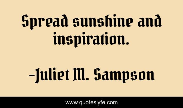 "Juliet M. Sampson Quotes." Quoteslyfe.com, 2025. Tue. 09 Dec. 2025. <https://www.quoteslyfe.com/quote/Spread-sunshine-and-inspiration-187891>.