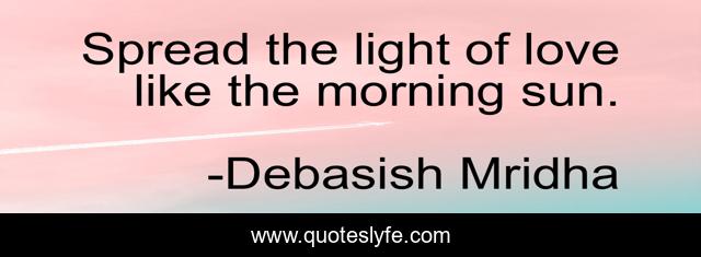 This page presents the quote "Spread the light of love like the morning sun.". Author of this quote is Debasish Mridha. This quote is about life, love, knowledge, inspirational, intelligence, philosophy, wisdom, quotes, affection,.