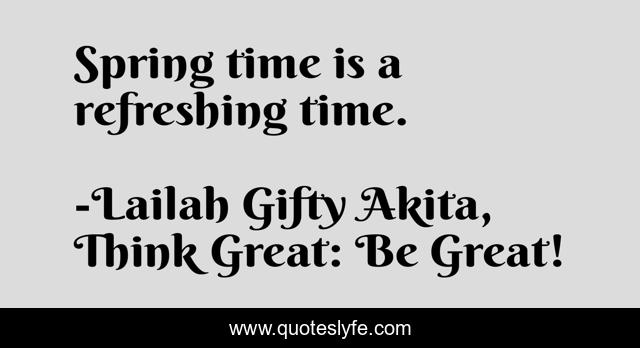 "Lailah Gifty Akita, Think Great: Be Great! Quotes." Quoteslyfe.com, 2025. Fri. 05 Dec. 2025. <https://www.quoteslyfe.com/quote/Spring-time-is-a-refreshing-time-140467>.