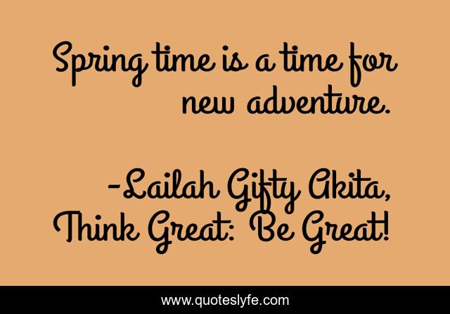 "Lailah Gifty Akita, Think Great: Be Great! Quotes." Quoteslyfe.com, 2025. Sat. 06 Dec. 2025. <https://www.quoteslyfe.com/quote/Spring-time-is-a-time-for-new-151760>.