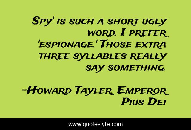 "Howard Tayler, Emperor Pius Dei Quotes." Quoteslyfe.com, 2025. Sat. 06 Dec. 2025. <https://www.quoteslyfe.com/quote/Spy-is-such-a-short-ugly-word-55785>.