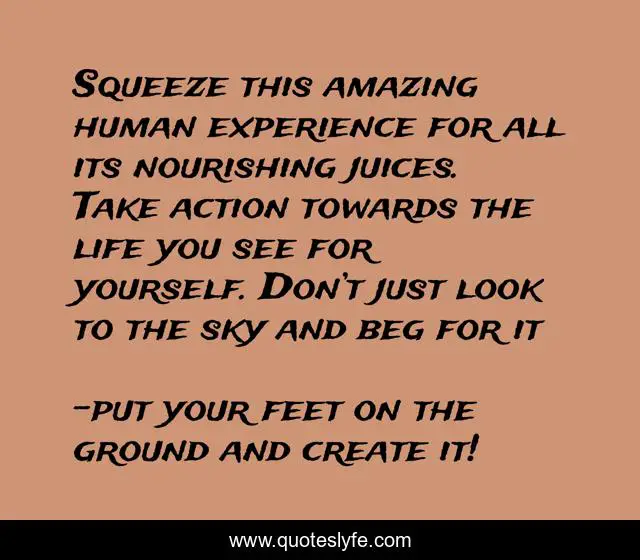 "put your feet on the ground and create it! Quotes." Quoteslyfe.com, 2025. Mon. 08 Dec. 2025. <https://www.quoteslyfe.com/quote/Squeeze-this-amazing-human-experience-for-all-141328>.