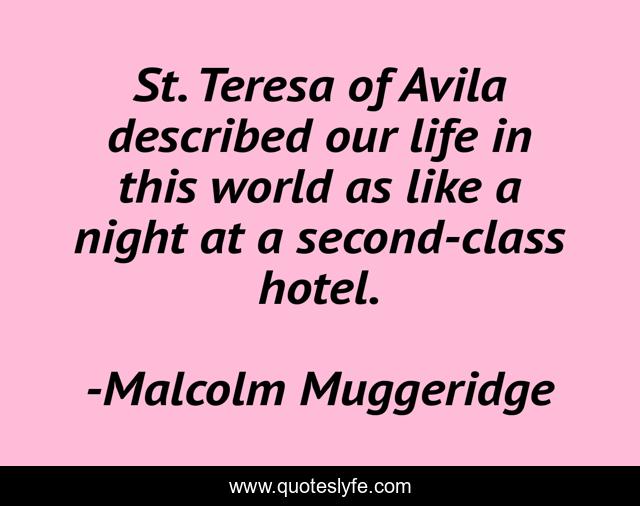 This page presents the quote "St. Teresa of Avila described our life in this world as like a night at a second-class hotel.". Author of this quote is Malcolm Muggeridge. .