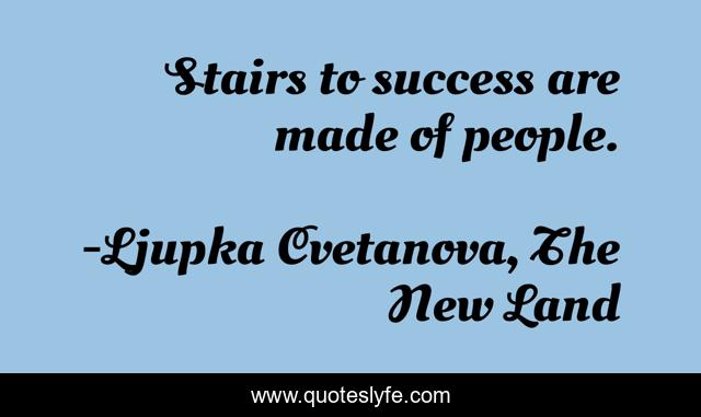 "Ljupka Cvetanova, The New Land Quotes." Quoteslyfe.com, 2025. Mon. 08 Dec. 2025. <https://www.quoteslyfe.com/quote/Stairs-to-success-are-made-of-people-144850>.