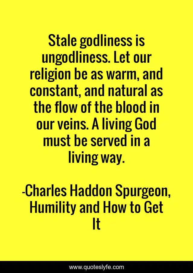 "Charles Haddon Spurgeon, Humility and How to Get It Quotes." Quoteslyfe.com, 2025. Tue. 09 Dec. 2025. <https://www.quoteslyfe.com/quote/Stale-godliness-is-ungodliness-Let-our-religion-195855>.