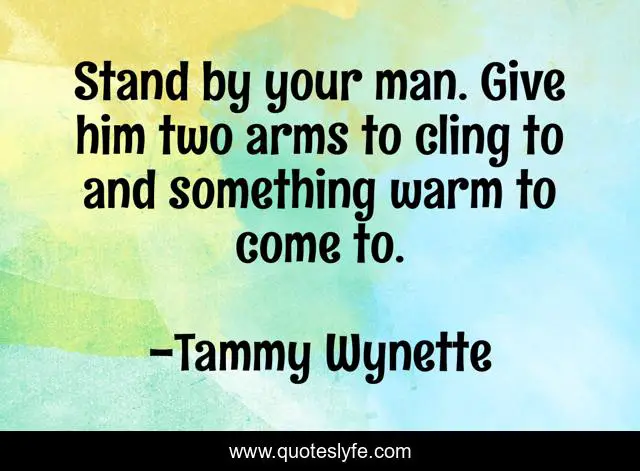 This page presents the quote "Stand by your man. Give him two arms to cling to and something warm to come to.". Author of this quote is Tammy Wynette. This quote is about man, stand, him,.