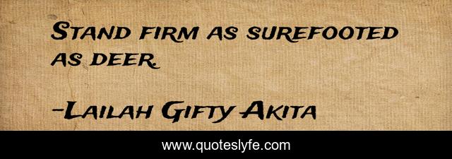 This page presents the quote "Stand firm as surefooted as deer.". Author of this quote is Lailah Gifty Akita. This quote is about strength, self-determination, willpower,.