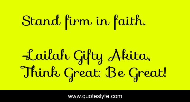 "Lailah Gifty Akita, Think Great: Be Great! Quotes." Quoteslyfe.com, 2025. Tue. 09 Dec. 2025. <https://www.quoteslyfe.com/quote/Stand-firm-in-faith-85023>.